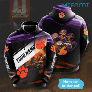 Clemson Hoodie 3D Paw Power Custom Name Clemson Tigers Gift