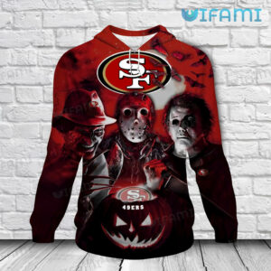 Niners Hoodie 3D Freddy Jason Michael Myers Pumpkin San Francisco 49ers Gift
