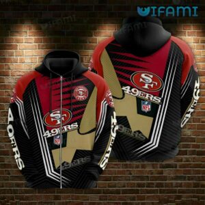 49ers Zip Up Hoodie 3D Diagonal Stripe Pattern San Francisco 49ers Gift