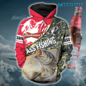 Budweiser Hoodie 3D Bass Fishing Beer Lovers Gift