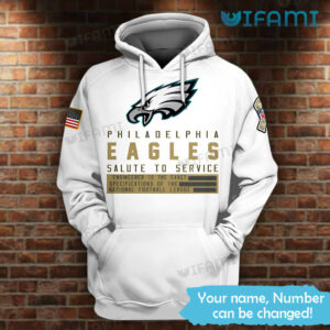 Phila Eagles Salute To Service Hoodie 3D White Custom Name Philadelphia Eagles Gift