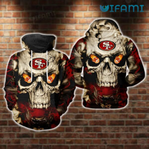 49ers Skull Hoodie 3D Fire Eyes San Francisco 49ers Gift