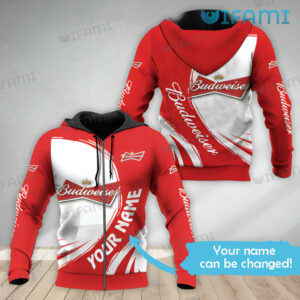 Personalized Budweiser Hoodie 3D Red And White Beer Lovers Gift