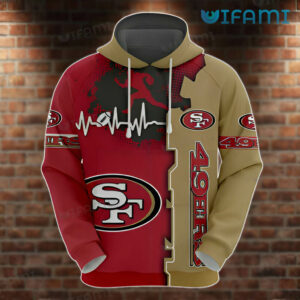 49ers Hoodie 3D Heartbeat Red Brown San Francisco 49ers Gift