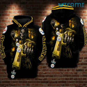 Steelers Hoodie 3D Skeleton Shooting Guns Logo Pittsburgh Steelers Gift