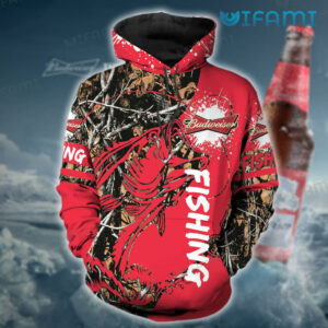 Red Budweiser Hoodie 3D Fishing Gift For Beer Lovers