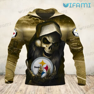 Steelers Hoodie 3D Skeleton Wearing Santa Hat Logo Pittsburgh Steelers Gift