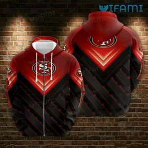 49ers Zip Up Hoodie 3D Black Diagonal Stripe Pattern San Francisco 49ers Gift
