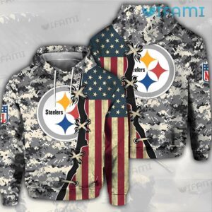 Steelers Hoodie 3D USA Flag Camo Pattern Stitches Pittsburgh Steelers Gift
