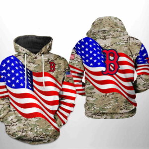 Boston Red Sox MLB US Flag Camo Veteran 3D Hoodie
