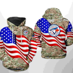 Toronto Blue Jays MLB US Flag Camo Veteran 3D Hoodie Zipper Hoodie