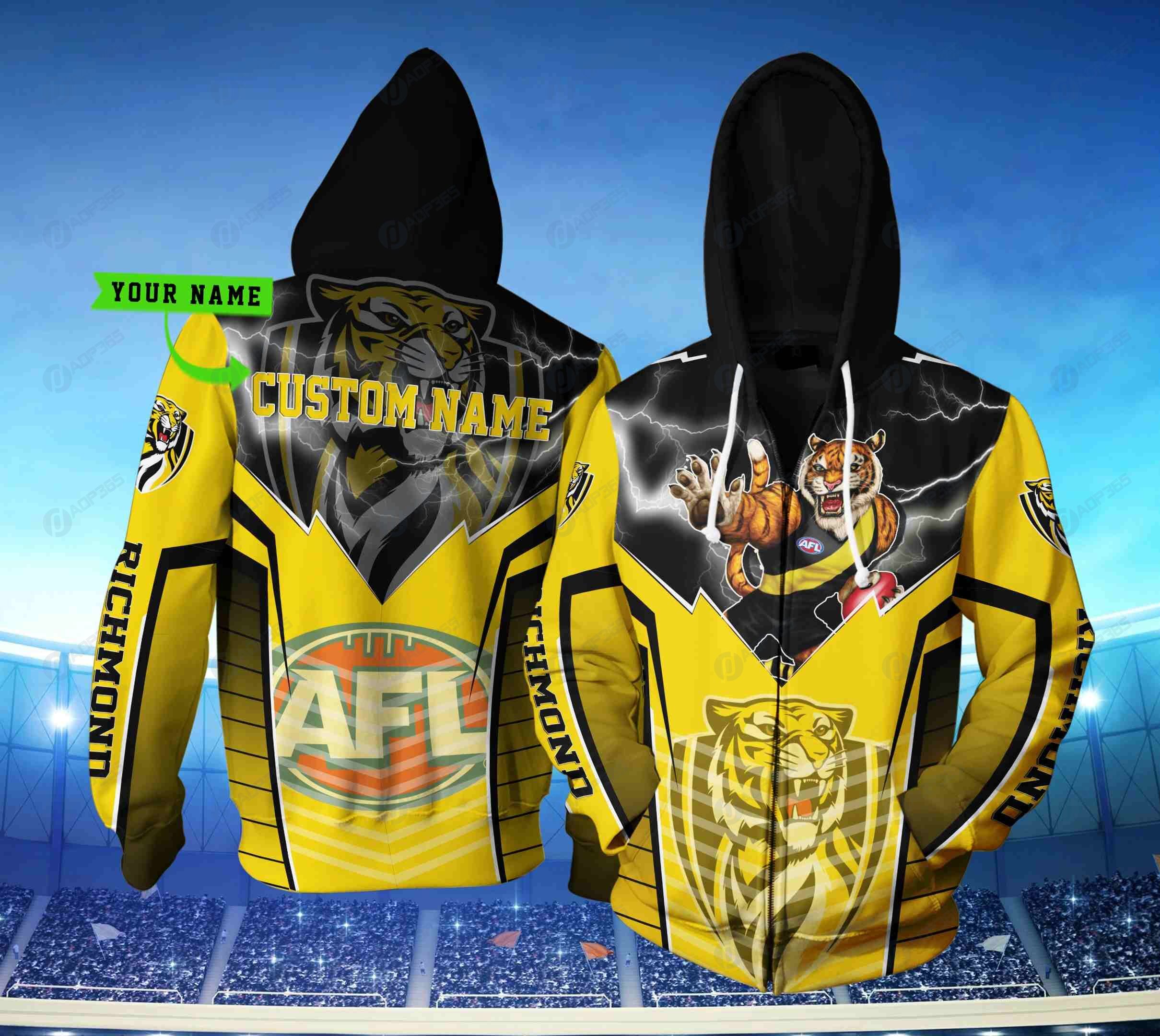 Customized Richmond Football Club Afl Lightning Mascot 3D Hoodie With Personalized Name All Over Print