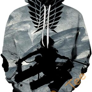 Attack On Titan Print Pullover With Front Pocket Sport All Over Print Hoodie 3D
