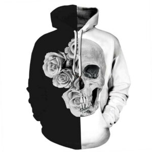 Halloween Skull And Rose 3D Hoodie Zipper Hoodie