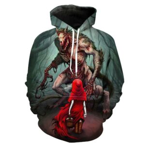 Red Riding Hood And Wolf Printed Hoodie 3D