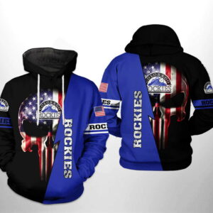Colorado Rockies MLB US Flag Skull 3D Hoodie Zipper Hoodie