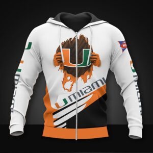 Miami Hurricanes Hoodie 3D Zip Hoodie Long Sleeve Gift for Fan