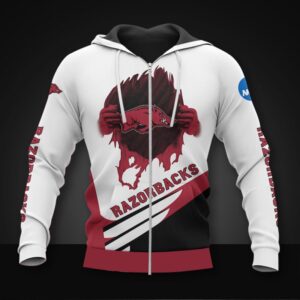 Arkansas Razorbacks Hoodie 3D Zip Hoodie Long Sleeve Zip Hoodie for Fan