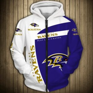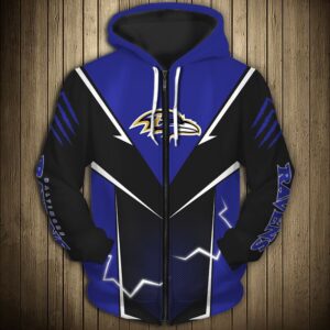 Baltimore Ravens Hoodie 3D Zip Hoodie Pullover Gift for Fans