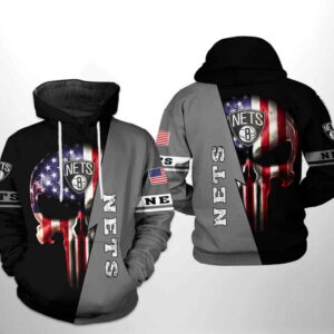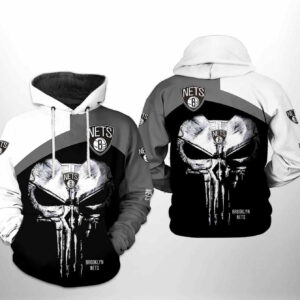 Brooklyn Nets NBA Skull Punisher Team 3D Hoodie