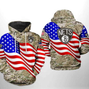 Brooklyn Nets NBA US Flag Camo Veteran Team 3D Hoodie