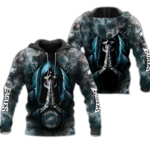 Philadelphia Eagles Hoodie 3D Zip Hoodie Death Smoke Graphic Gifts for Fans