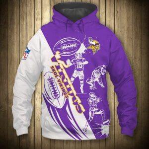 Minnesota Vikings Hoodie 3D Cartoon Player Cute Zip Hoodie