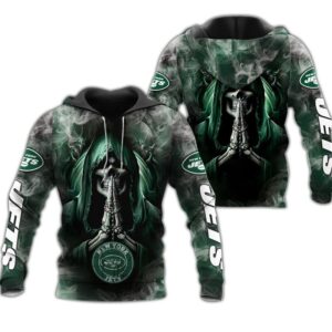 New York Jets Hoodie 3D Zip Hoodie Death Smoke Graphic Gifts for Fans