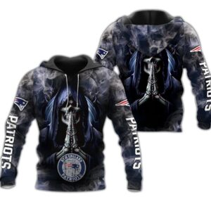 New England Patriots Hoodie 3D Zip Hoodie Death Smoke Graphic Gifts for Fans