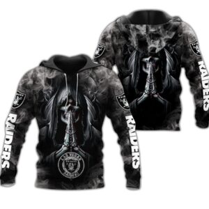 Las Vegas Raiders Hoodie 3D Zip Hoodie Death Smoke Graphic Gifts for Fans