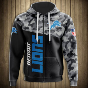 Detroit Lions Military Hoodie 3D Zip Hoodie 3D Zip Hoodie Long Sleeve New Season