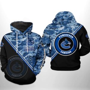 Vancouver Canucks Nhl Camo Veteran 3D All Over Print Zip Up Hoodie Option