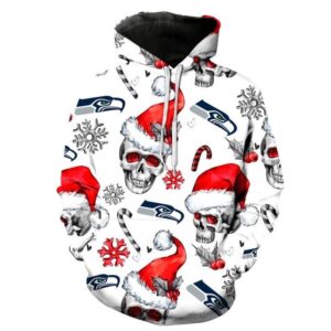 Seattle Seahawks Nfl Football Christmas Skull White 3D All Over Print Zip Up Hoodie Option