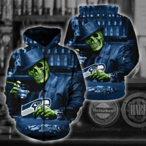 Seattle Seahawks Nfl Skull 3D All Over Print Zip Up Hoodie Option