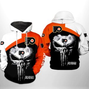 Philadelphia Flyers Nhl Skull Punisher 3D All Over Print Zip Up Hoodie Option