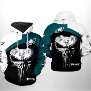 Philadelphia Eagles Nfl Skull Punisher Team 3D All Over Print Zip Up Hoodie Option