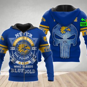 West Coast Eagles Afl 3D Hoodie With Personalized Never Underestimate Skull And Custom Name All Over Printed Hoodie