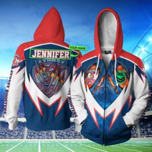 Custom 3D All Over Printed Sydney Roosters Hoodie Show Your Team Pride With Personalized Lightning New Nrl Design