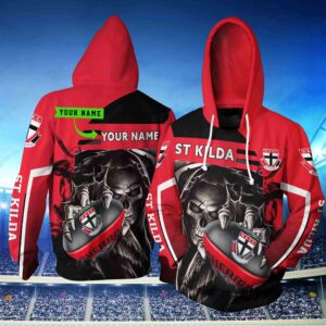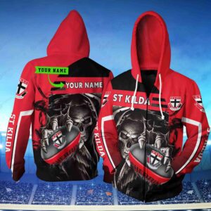 Personalized St Kilda Football Club Afl Skull Ball New 3D Hoodie Custom Name 3D All Over Print Zip Up Hoodie Option