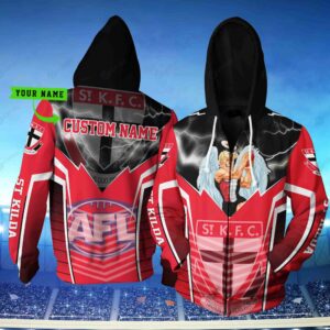St Kilda Football Club Afl Lightning Mascot 3D Hoodie Custom Name 3D All Over Print Zip Up Hoodie Option