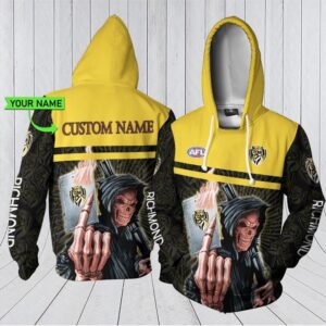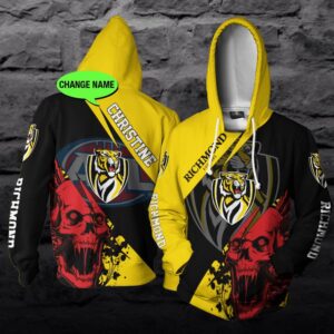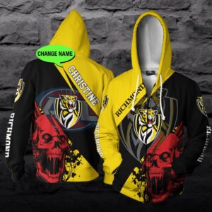 Customized Richmond Football Club Afl Skull 3D Hoodie With Personalized Name All Over Print New Zip Up Design
