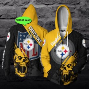 Personalized Pittsburgh Steelers Nfl Skull Custom 3D All Over Print Hoodie