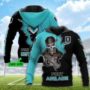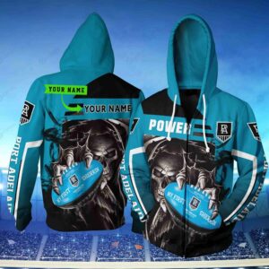 Port Adelaide Football Club Afl Personalized Skull 3D Hoodie With Custom Name All Over Print Zip Up Hoodie