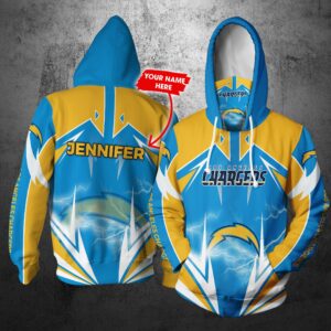 Personalized Nfl Gaiter Hoodie Los Angeles Chargers Gaiter Hoodie Lightning Custom Name 3D All Over Printed Hoodie