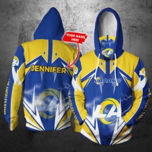 Personalized Nfl Gaiter Hoodie Los Angeles Rams Gaiter Hoodie Lightning Custom Name 3D All Over Print Hoodie