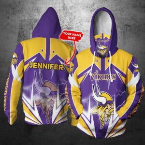 Personalized Nfl Gaiter Hoodie Minnesota Vikings Gaiter Hoodie Lightning Custom Name 3D All Over Printed Hoodie
