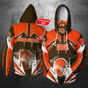 Personalized Nfl Gaiter Hoodie Cleveland Browns Gaiter Hoodie Lightning Custom Name 3D All Over Printed Hoodie