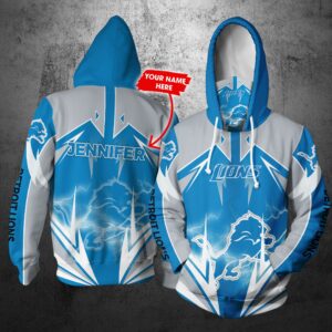 Personalized Nfl Gaiter Hoodie Detroit Lions Gaiter Hoodie Lightning Custom Name 3D All Over Printed Hoodie