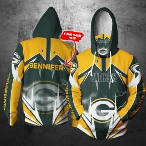 Personalized Nfl Gaiter Hoodie Green Bay Packers Gaiter Hoodie Lightning Custom Name 3D All Over Printed Hoodie