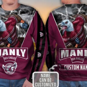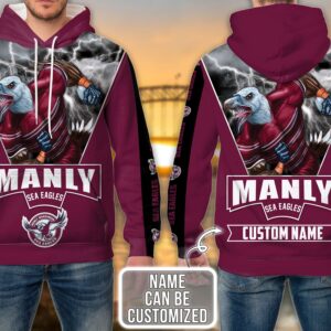 Manly Warringah Sea Eagles 3D Hoodie Nrl 3D Hoodie Mascot Custom Name 3D All Over Printed Hoodie